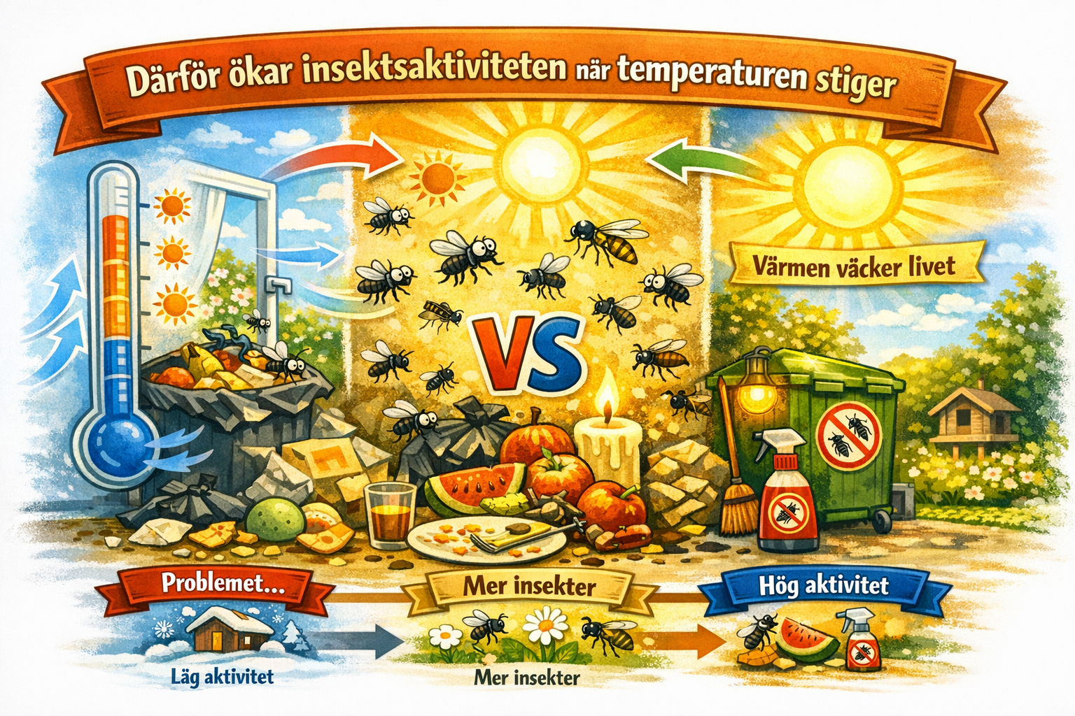 När insektsaktiviteten ökar i takt med temperaturen blir tajming och kontinuitet extra viktiga. Förebyggande arbete som påbörjas innan de varmare perioderna är fullt etablerade kan bidra till en jämnare situation över tid.